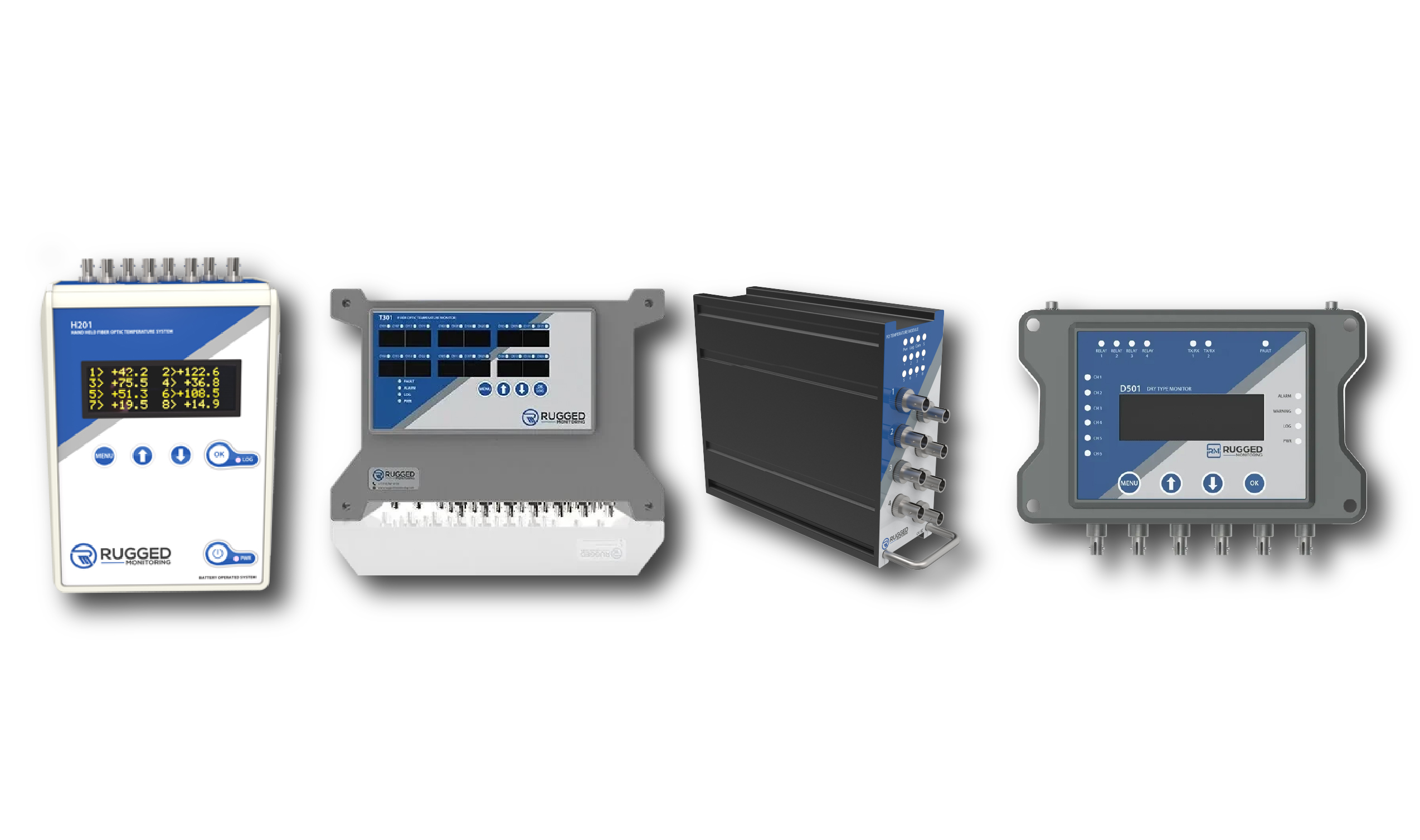 Rugged Monitoring’s fiber optic temperature monitors convert analog signals captured by fiber optic sensors into digital signals. By analyzing changes in light behavior, including wavelength, phase, intensity, or delay caused by interactions between asset components and sensor elements, they ensure real-time, data-driven analysis of temperature fluctuations.